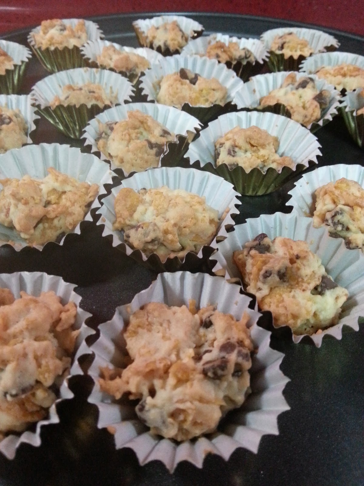- Add in cornflakes and chocolate chips. Mix till combined.
